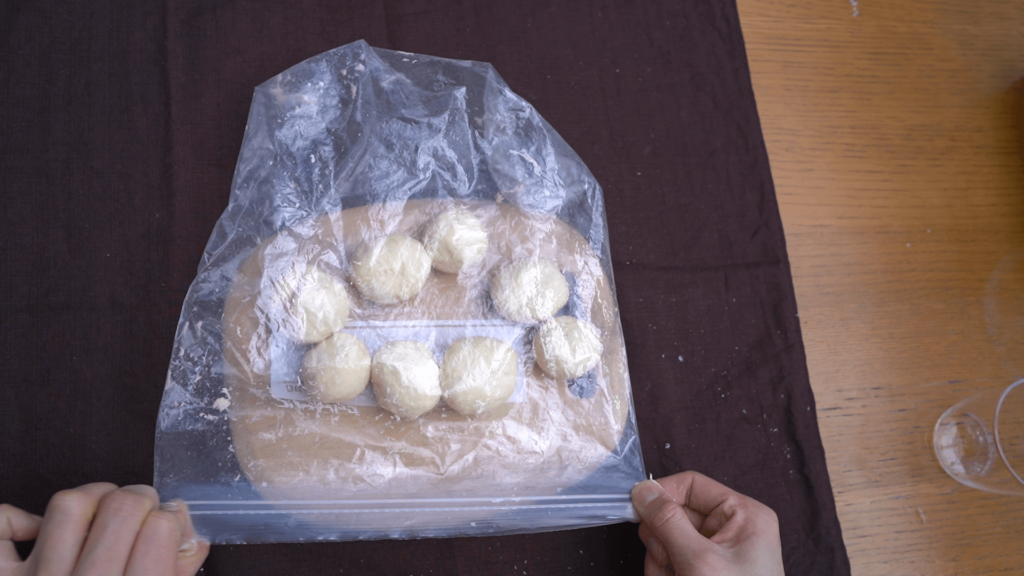 こねた生地を再び袋に戻して、10分間寝かせます。