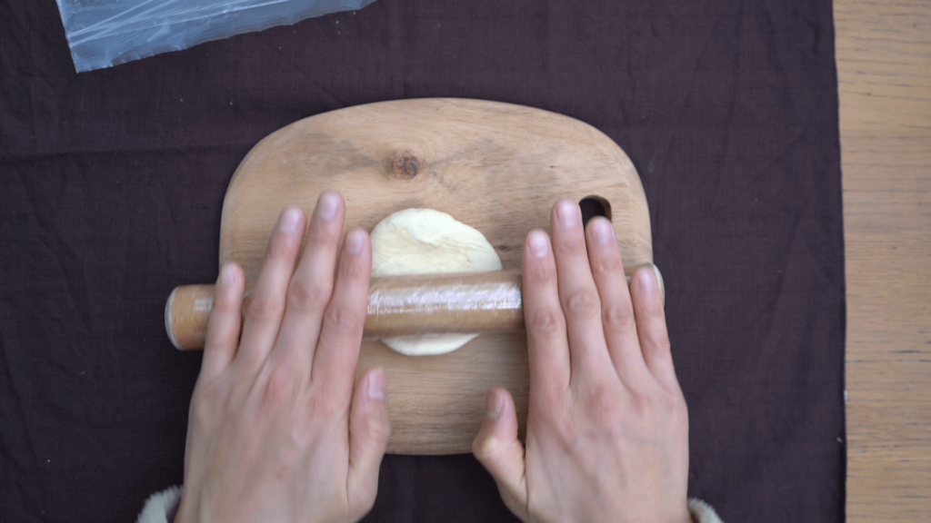 麺棒で薄く延ばします。