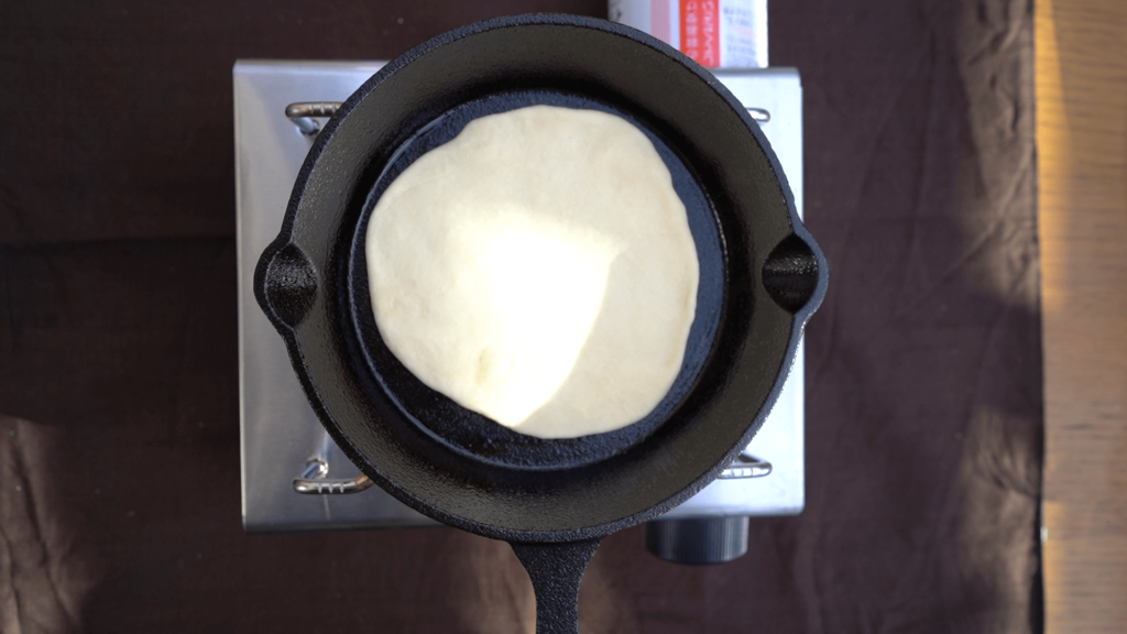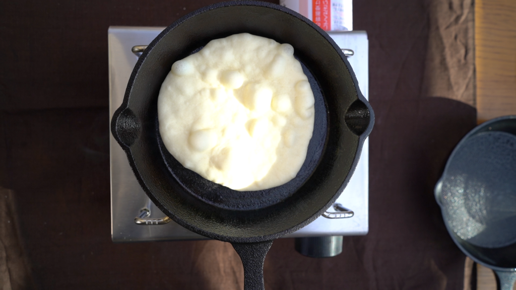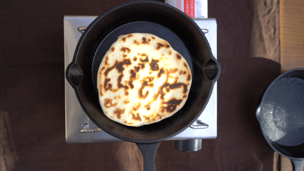 このようにプクプクっと表面が膨らんできます。ひっくり返して裏面も焼きます。