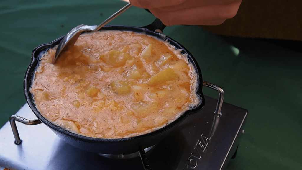 このまますくって食べても良いですし、ひっくり返してスキレットから外し、ケーキのようにカットして食べても良いです。