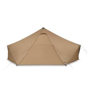 一般的なワンポールテントのデメリットである居住空間の狭さがこのテンションポールによって解消されています。ワンポールテントが地面を底辺に三角形を描いているのに対し、このギギ1はテンションポールを使用し地面を底辺に五角形を描いています。つまり天井に当たる二辺が鋭角にならないような工夫を凝らしているからこそこの高さが実現し、テント内での空間が確保できているのです。